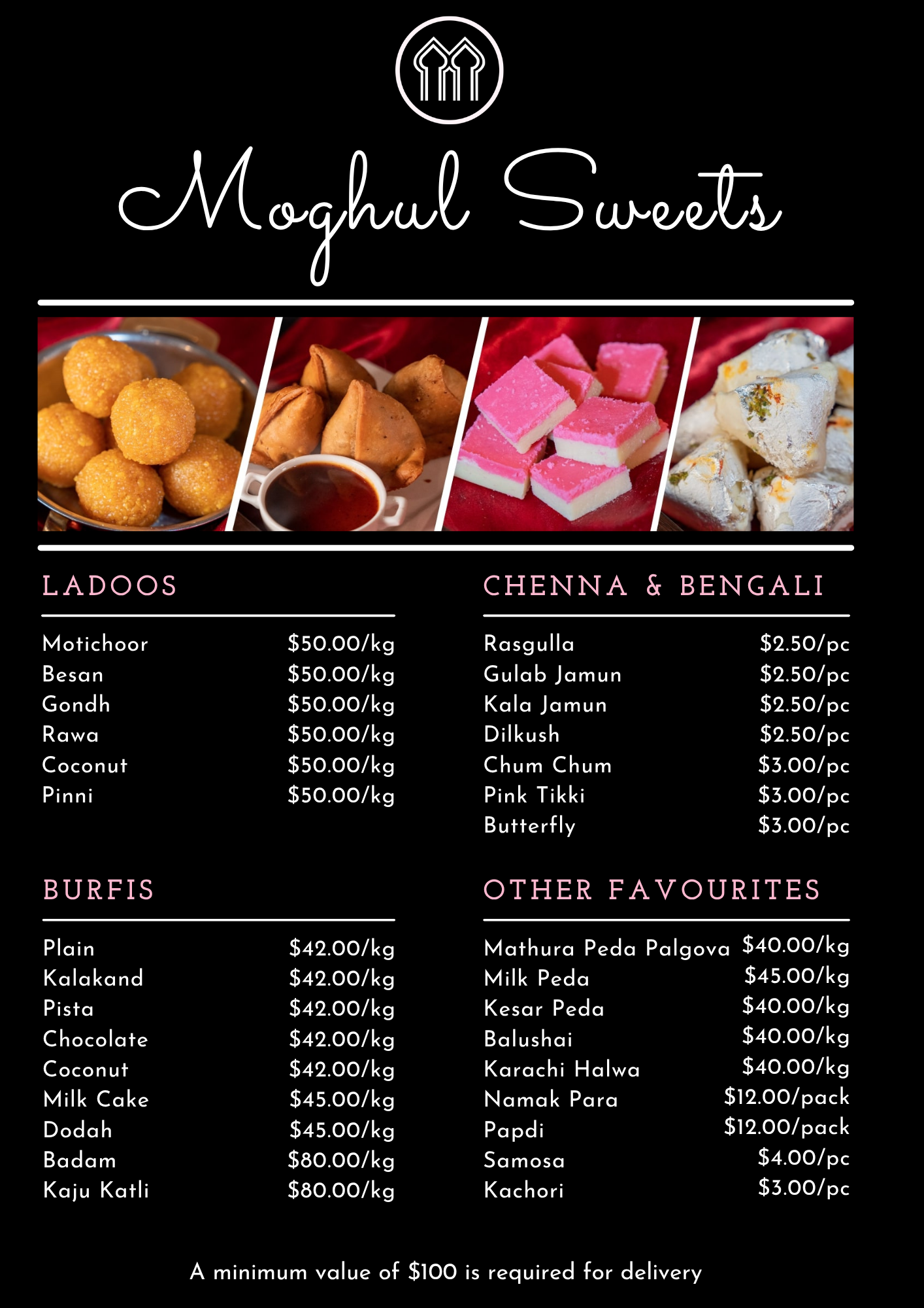 A minimum order value of $100 is required for delivery